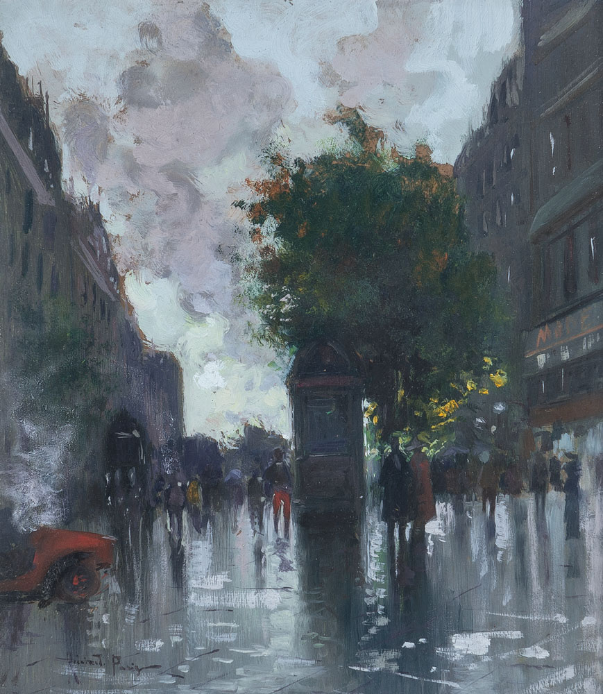 olio su cartone cm. 30x26, firma e località (Parigi) in basso a sinistra.