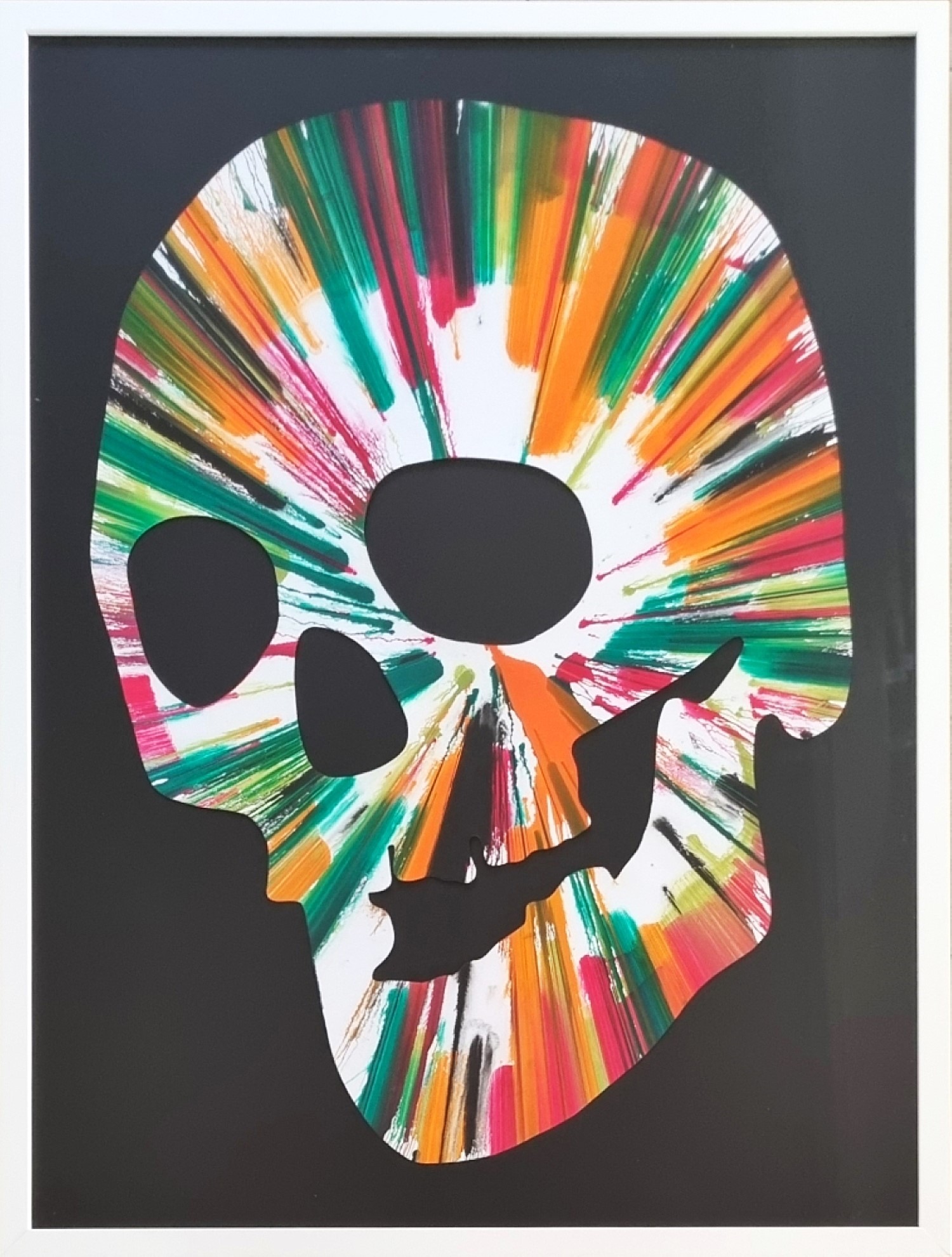 HIRST DAMIEN Bristol 1965 "Skull" Acrilico su carta cm 52x71,5 del 2009. Firma e timbro dell'Artista al verso. Opera realizzata per celebrare l'apertura di "Damien Hirst Requiem" al Pinchukart Center di Kiev. Riscontro diretto di autenticità da parte dell'Artista. L'Artista dice: "è sempre un'emozione speciale vedere un mio pezzo riprendere vita in uno spazio diverso, quest'opera è ispirata all'equilibrio tra caos e chiarezza e in essa sperimentavo tecniche di spin". Si ringrazia il Maestro per questa recensione dell'opera.
