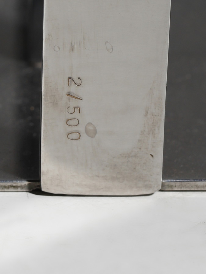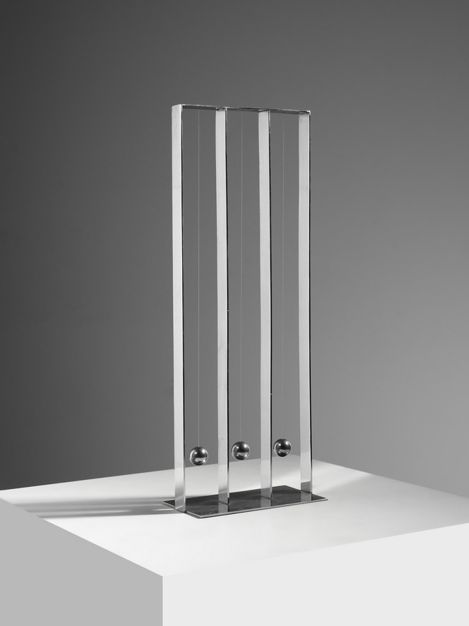 MELOTTI FAUSTO (1901 - 1986) SCULTURA A (I PENDOLI). Acciaio Inox. Cm 15,00 x 40,00 x 8,00. firma e tiratura incise alla base, es. 2/500