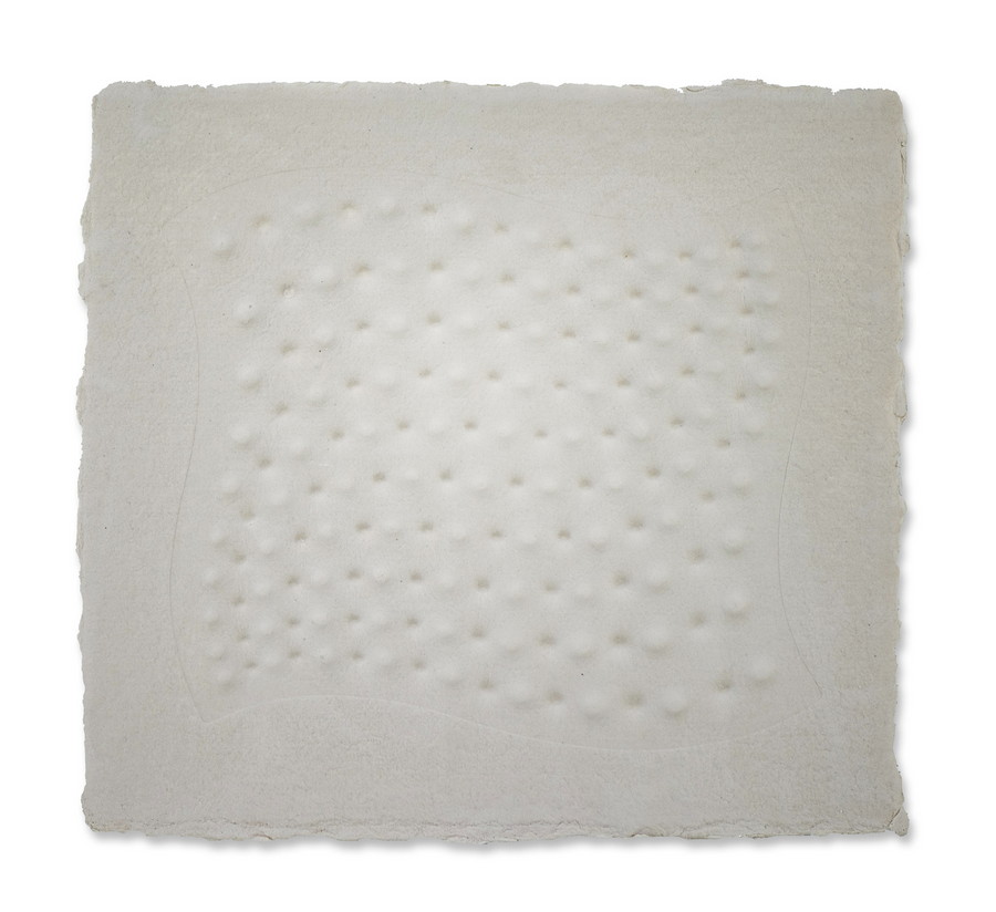 CASTELLANI ENRICO (1930 - 2017) MULTIPLO DUE. 2010. rilievo su jesmonite in resina bianca entro display in perspex. Cm 31,00 x 28,50. sul retro: firma e tiratura a pennarello, es.10/25