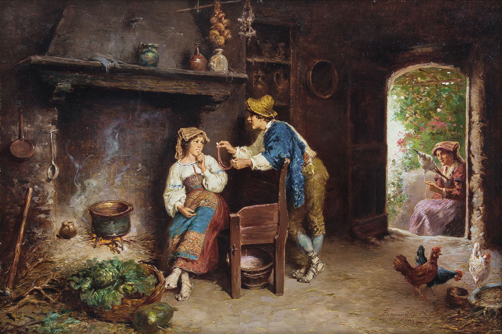 BERGAMINI FRANCESCO Roma 1851 - 1900Il corteggiatore furtivoolio su tela...