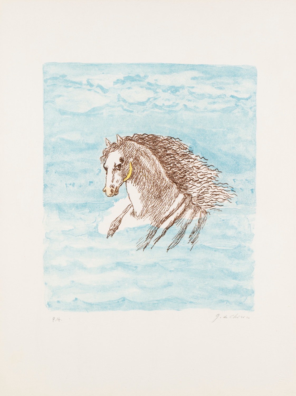 Giorgio de Chirico (Volos 1888 - Roma 1978) - Testa di cavallo tra le nubi,