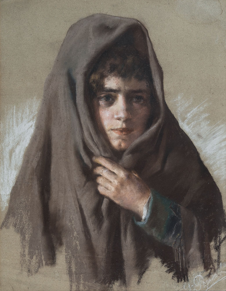 BUSATO GIOVANNI Vicenza 1806 - 1886Ragazza con lo scialletecnica mista su...