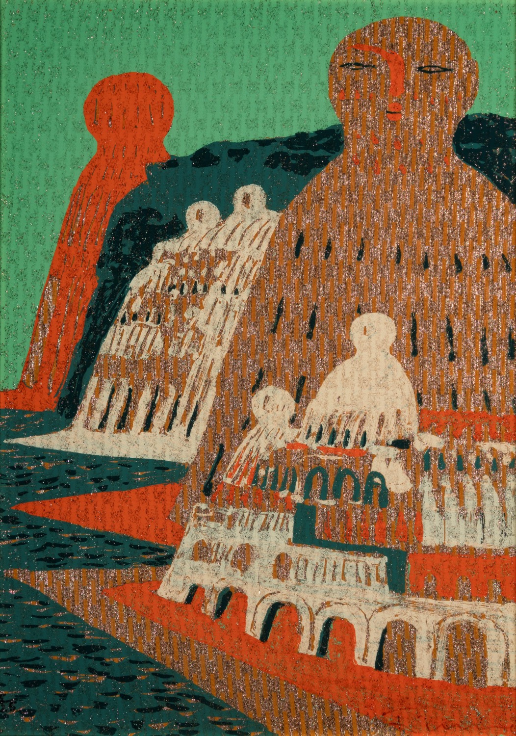 serigrafia a colori su stoffa applicata su cartoncino, es. 5/125