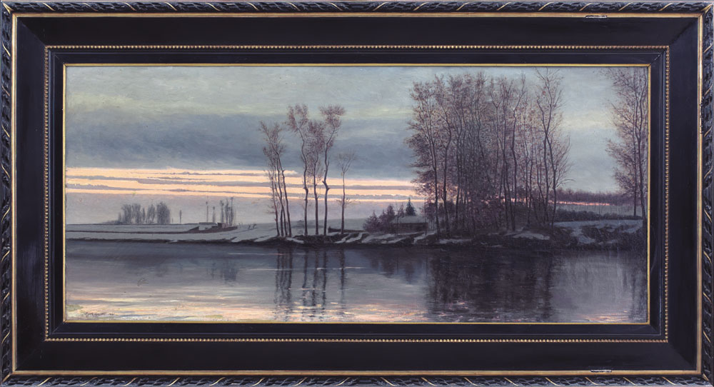olio su tela cm. 63x141, firma e anno in basso a sinistra.