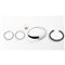 Orecchini a cerchio con montatura in metallo argentato e Swarovski. Un bracciale rigido con montatura in metallo argentato e Swarovski incolore e neri. Un bracciale rigido con montatura in metallo argentato e Swarovski grigi. Un anello in lucide incolore, pavé centrale di strass con montatura in metallo dorato.