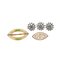 Tre bottoni circolari con montatura in metallo argentato e strass. Mancanze. Una fibbia ellittica con montatura in metallo dorato, diamanti e zaffiri sintetici, smalto verde. Una fibbia ellittica con montatura in metallo brunito, diamanti sintetici.