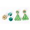 Orecchini pendenti con montatura in metallo, strass iridati e strass verdi. Orecchini semisferici con montatura in metallo, paillettes verdi, chiusura clips. Ciondolo sferico con montatura in metallo dorato e diamanti sintetici taglio brillante.