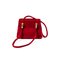 Borsa a spalla in camoscio rosso di forma trapezoidale, chiusura sul bordo superiore, manici tubolari con attacchi in metallo dorato. Segni di uso. Marchio di produzione.
