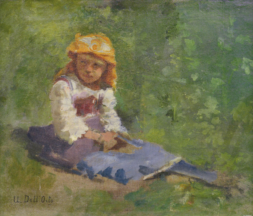 DELL'ORTO UBERTO Milano 06/01/1848 - 29/11/1895Bimba seduta sul pratoolio su...