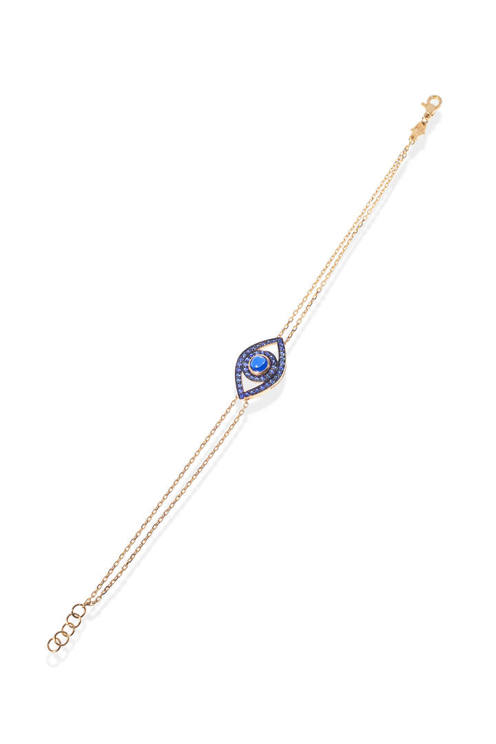 Bracciale in oro rosa con al centro occhio stilizzato con zaffiri taglio rotondo e cabochon, firmato "Netali Nassim".