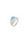 in oro bianco, sommità a cupola, lavorata a scaglie satinate con al centro sfera in turchese, contornata da diamanti taglio 8/8 per totale 0,10 ca