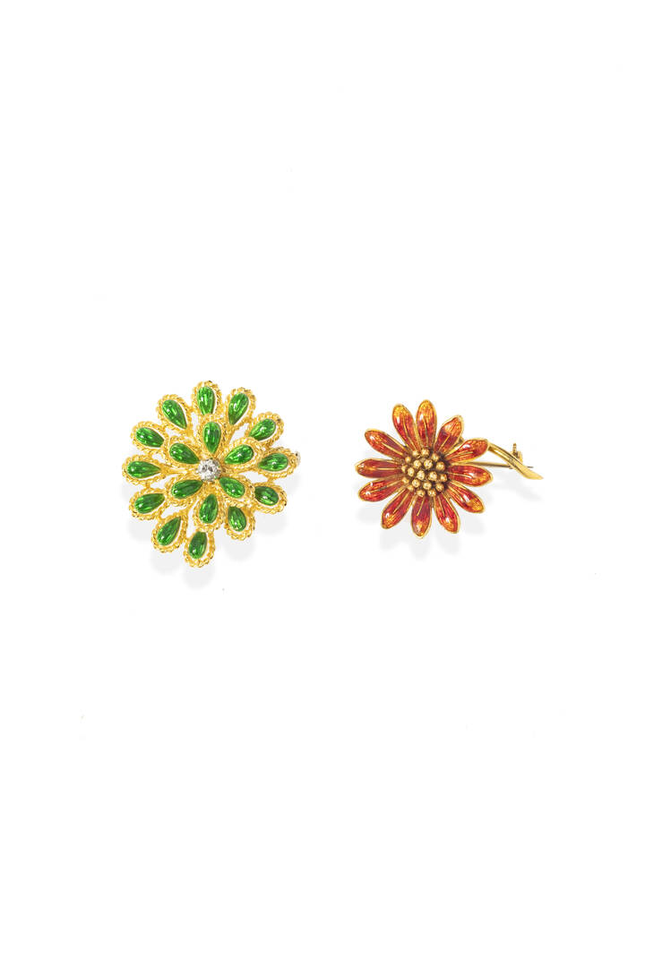 - a forma di fiore con smalto arancio (difetti), marcata "160Al", "Lunati". Peso gr 7,5. Cm 3x2