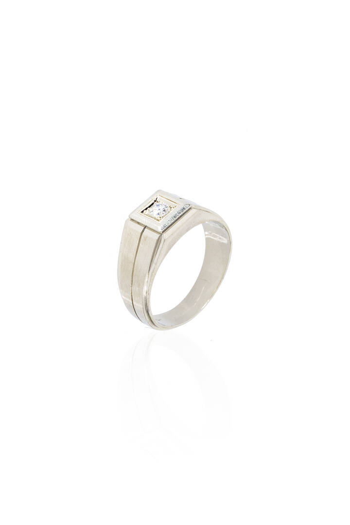 in oro bianco, sommità piatta, con al centro un diamante taglio brillante di ct 0,15 ca.