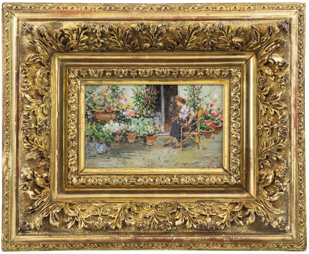 IROLLI VINCENZO Napoli 30/09/1860 - 27/11/1942Terrazza fiorita con ragazza in...