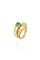 in oro giallo, modello contrarié, con smeraldo taglio ottagonale di ct 0,80 ca e diamanti taglio baguette e trapezio per totali ct 0,70 ca
