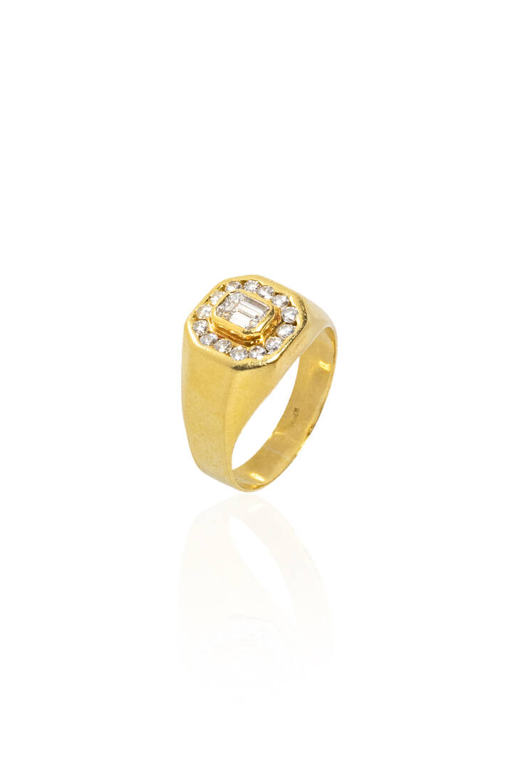 in oro giallo, al centro diamante taglio ottagonale di ct 0,40 ca e contorno di diamanti taglio brillante per totali ct 0,14 ca
