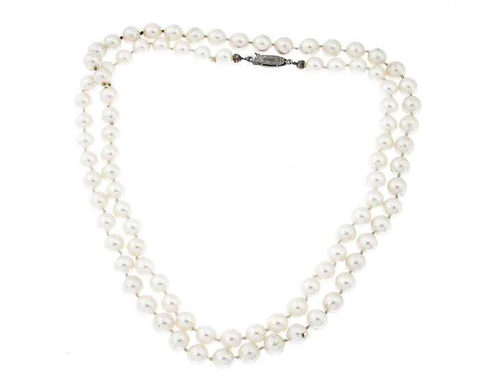 composta da un filo di perle giapponesi del diam di mm 6 e 6,5 ca. Chiusura in argento 925/1000