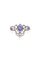 in oro a bassa caratura ed argento, XIX secolo, ad intreccio, al centro zaffiro Ceylon taglio ovale non trattato di ct 8,0 ca; ai lati due zaffiri taglio rotondo di ct 0,80 ca. Diamanti di vecchio taglio per totali ct 0,80 ca
