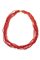 composta da dieci fili di sfere di corallo rosso mediterraneo del diam. di mm 4. Chiusura geometrica in oro giallo e bianco con due file di diamanti taglio brillante per totali ct 0,40 ca