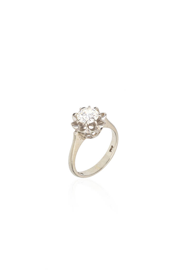 in oro bianco al centro diamanti solitario taglio brillante di ct 0,90 ca, probabile colore I-J, purezza VVS