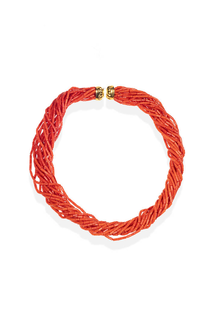 torchon composto tra tronchetti di corallo rosso mediterraneo. Chiusura a fiocco in oro giallo