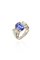 in oro bianco al centro zaffiro sintetico taglio ovale ed ai lati diamanti taglio 8/8 e di vecchio taglio per totali ct 0,25 ca