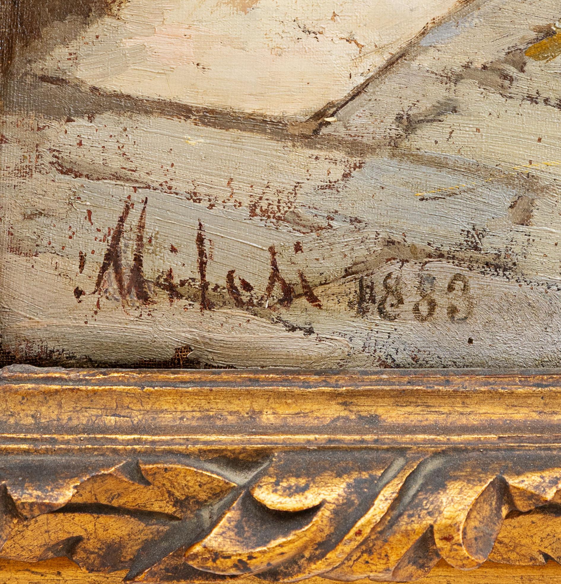 - Alessandro Milesi, figlio di Giovanni Maria, un commerciante all'ingrosso di granaglie, e della sua seconda moglie Lucia Viola, vide la luce a Venezia il 29 aprile 1856. Fu battezzato il 4 maggio nella parrocchia di S. Trovaso, contribuendo così alla ricca tradizione artistica di questa città lagunare.La sua giovinezza fu segnata da sfide economiche a causa della malattia del padre, che lo spinsero a iniziare a lavorare come tabaccaio nei pressi di S. Simeone. Tuttavia, la sua passione per l'arte lo spinse a perseguire una carriera artistica.A soli tredici anni, il 15 novembre 1869, Alessandro si iscrisse all'Accademia di belle arti di Venezia, un importante passo nella sua formazione. Qui studiò con impegno e ottenne risultati lodevoli, come attestato dai documenti conservati negli Archivi dell'Accademia.Il suo percorso artistico lo portò successivamente a Verona, dove seguì il suo insegnante Napoleone Nani. Grazie all'aiuto di Nani, ottenne commissioni importanti, tra cui il dipinto del soffitto di una chiesa a Isola della Scala e altri lavori significativi.Tornato a Venezia, Alessandro Milesi creò opere notevoli, tra cui i ritratti del padre e della madre, esposti in importanti gallerie d'arte. Espose in diverse mostre nazionali ed internazionali, guadagnandosi una crescente reputazione.Le sue opere spesso rappresentavano scene di vita quotidiana veneziana, con gruppi di persone intente al lavoro o alla conversazione, influenzate dalla tendenza artistica di quegli anni. Le sue composizioni richiamavano l'attenzione di collezionisti e artisti stranieri.Nel 1886, Alessandro Milesi si sposò con Maria Ciardi, anch'essa proveniente da una famiglia di artisti. Continuò a dipingere con passione, realizzando ritratti e opere di grande impegno sociale.Partecipò regolarmente alla Biennale di Venezia, esponendo diverse opere che ottennero apprezzamento e premi. Il suo contributo all'arte veneziana fu significativo, con opere che riflettevano la vita e la cultura della città.Nel 1934, realizzò una pala d'altare per la chiesa di S. Teresa a Venezia, una delle rare opere a soggetto religioso della sua carriera.Alessandro Milesi trascorse gran parte della sua vita a Venezia, contribuendo in modo significativo alla scena artistica della città. Morì il 29 ottobre 1945 a Venezia, lasciando un eredità duratura nel mondo dell'arte veneziana. Le sue opere continuano a essere ammirate e studiate per la loro bellezza e autenticità.