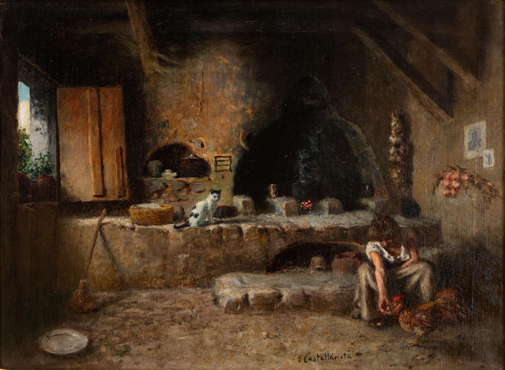 - Enrico Castellaneta nacque a Gioia del Colle, in provincia di Bari, il 27 maggio 1862, in una famiglia colta e benestante: il padre Vincenzo, architetto e sindaco della città, e la madre Maria Labriola, originaria di Altamura. Fin da giovanissimo mostrò una naturale inclinazione per il disegno, tanto che, nonostante le aspettative paterne di una carriera tecnica, scelse di dedicarsi alla pittura. Dopo aver frequentato le scuole tecniche di Altamura e l’Istituto Tecnico della sua città, decise di proseguire gli studi artistici a Napoli, allora uno dei centri più vivaci della pittura italiana.All’Accademia di Belle Arti partenopea seguì i corsi di maestri come Domenico Morelli, Filippo Palizzi e Gioacchino Toma, dai quali apprese l’importanza dell’osservazione diretta e la sensibilità luminosa tipica della scuola napoletana. Nel 1891 esordì alla Promotrice di Napoli con alcune opere di genere e d’interni, tra cui In chiesa e Interno, che furono accolte positivamente dalla critica. Due anni più tardi ottenne il diploma di insegnante di disegno, affermandosi come pittore maturo e tecnico competente.A partire dal 1894 si trasferì a Capri, dove rimase per oltre un decennio. L’isola esercitò su di lui un fascino profondo: la luce, i colori e la vita quotidiana di quel luogo divennero temi centrali della sua arte. Durante questo periodo realizzò numerosi oli e acquerelli che raffigurano scorci mediterranei, paesaggi costieri e scene di vita popolare. Le sue opere, dal tono poetico e luminoso, furono acquistate da collezionisti italiani e stranieri, tra i quali lo scrittore russo Maksim Gorkij e l’industriale tedesco Friedrich Alfred Krupp. La pittura di Castellaneta si arricchì in questi anni di una tavolozza più vibrante e di una pennellata libera, attenta alle variazioni atmosferiche e alla resa del colore naturale.Nel 1906 tornò a Gioia del Colle, dove si dedicò non solo alla pittura ma anche alla promozione culturale. Fondò una scuola di disegno e nel 1911 organizzò la “Mostra d’Arte Moderna” del Comune, contribuendo alla crescita artistica del territorio. In questo periodo la sua produzione si concentrò sui paesaggi pugliesi, sui mercati, sui vicoli assolati e sulla vita contadina, raccontati con una delicatezza cromatica che unisce rigore formale e sentimento.La sua arte, fedele alla tradizione figurativa ma aperta a influssi moderni, si distingue per il senso di armonia e per l’intima attenzione alla luce. Attraverso la pittura a olio, il pastello e l’acquerello, Castellaneta riuscì a esprimere una visione pacata e poetica del mondo, in cui la natura e l’uomo convivono in equilibrio.Enrico Castellaneta morì a Bari nel 1953Enrico Castellaneta nacque a Gioia del Colle, in provincia di Bari, il 27 maggio 1862, in una famiglia colta e benestante: il padre Vincenzo, architetto e sindaco della città, e la madre Maria Labriola, originaria di Altamura. Fin da giovanissimo mostrò una naturale inclinazione per il disegno, tanto che, nonostante le aspettative paterne di una carriera tecnica, scelse di dedicarsi alla pittura. Dopo aver frequentato le scuole tecniche di Altamura e l’Istituto Tecnico della sua città, decise di proseguire gli studi artistici a Napoli, allora uno dei centri più vivaci della pittura italiana.All’Accademia di Belle Arti partenopea seguì i corsi di maestri come Domenico Morelli, Filippo Palizzi e Gioacchino Toma, dai quali apprese l’importanza dell’osservazione diretta e la sensibilità luminosa tipica della scuola napoletana. Nel 1891 esordì alla Promotrice di Napoli con alcune opere di genere e d’interni, tra cui In chiesa e Interno, che furono accolte positivamente dalla critica. Due anni più tardi ottenne il diploma di insegnante di disegno, affermandosi come pittore maturo e tecnico competente.A partire dal 1894 si trasferì a Capri, dove rimase per oltre un decennio. L’isola esercitò su di lui un fascino profondo: la luce, i colori e la vita quotidiana di quel luogo divennero temi centrali della sua arte. Durante questo periodo realizzò numerosi oli e acquerelli che raffigurano scorci mediterranei, paesaggi costieri e scene di vita popolare. Le sue opere, dal tono poetico e luminoso, furono acquistate da collezionisti italiani e stranieri, tra i quali lo scrittore russo Maksim Gorkij e l’industriale tedesco Friedrich Alfred Krupp. La pittura di Castellaneta si arricchì in questi anni di una tavolozza più vibrante e di una pennellata libera, attenta alle variazioni atmosferiche e alla resa del colore naturale.Nel 1906 tornò a Gioia del Colle, dove si dedicò non solo alla pittura ma anche alla promozione culturale. Fondò una scuola di disegno e nel 1911 organizzò la “Mostra d’Arte Moderna” del Comune, contribuendo alla crescita artistica del territorio. In questo periodo la sua produzione si concentrò sui paesaggi pugliesi, sui mercati, sui vicoli assolati e sulla vita contadina, raccontati con una delicatezza cromatica che unisce rigore formale e sentimento.La sua arte, fedele alla tradizione figurativa ma aperta a influssi moderni, si distingue per il senso di armonia e per l’intima attenzione alla luce. Attraverso la pittura a olio, il pastello e l’acquerello, Castellaneta riuscì a esprimere una visione pacata e poetica del mondo, in cui la natura e l’uomo convivono in equilibrio.Enrico Castellaneta morì a Bari nel 1953.