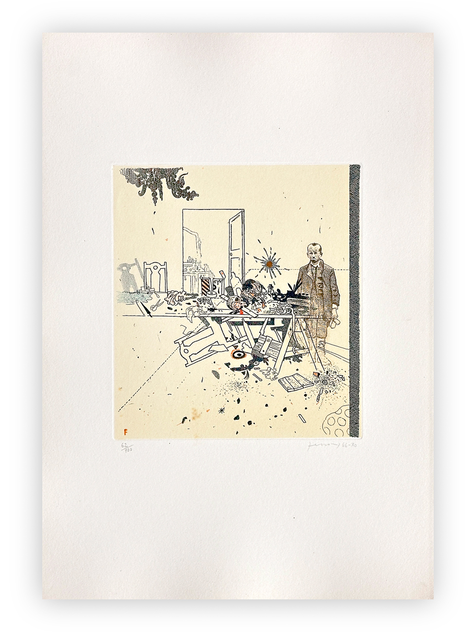 Acquaforte a 5 colori + fondino litografico, II° stato