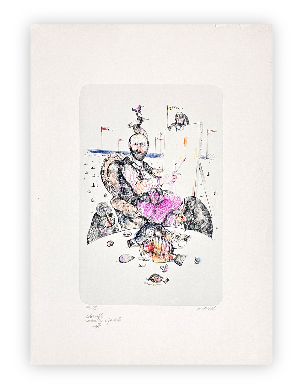 Litografia ritoccata a pastello