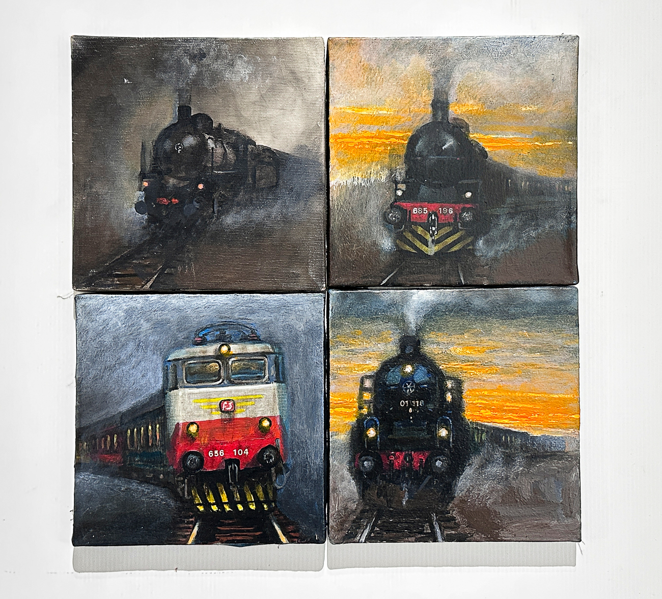 Lotto unico di 4 opere realizzate a olio su tela, ciascuna recante firma al retro