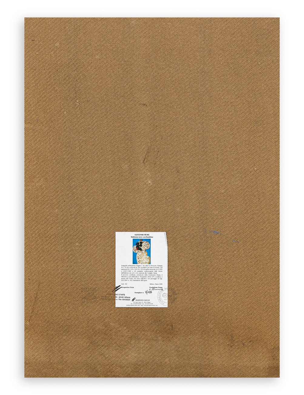 Certificato autenticità dalla Fondazione Fiume e rilasciato dall'Editore Prospettive d'Arte al retro con timbri della Fondazione Fiume e dell'Editore Prospettive d'Arte