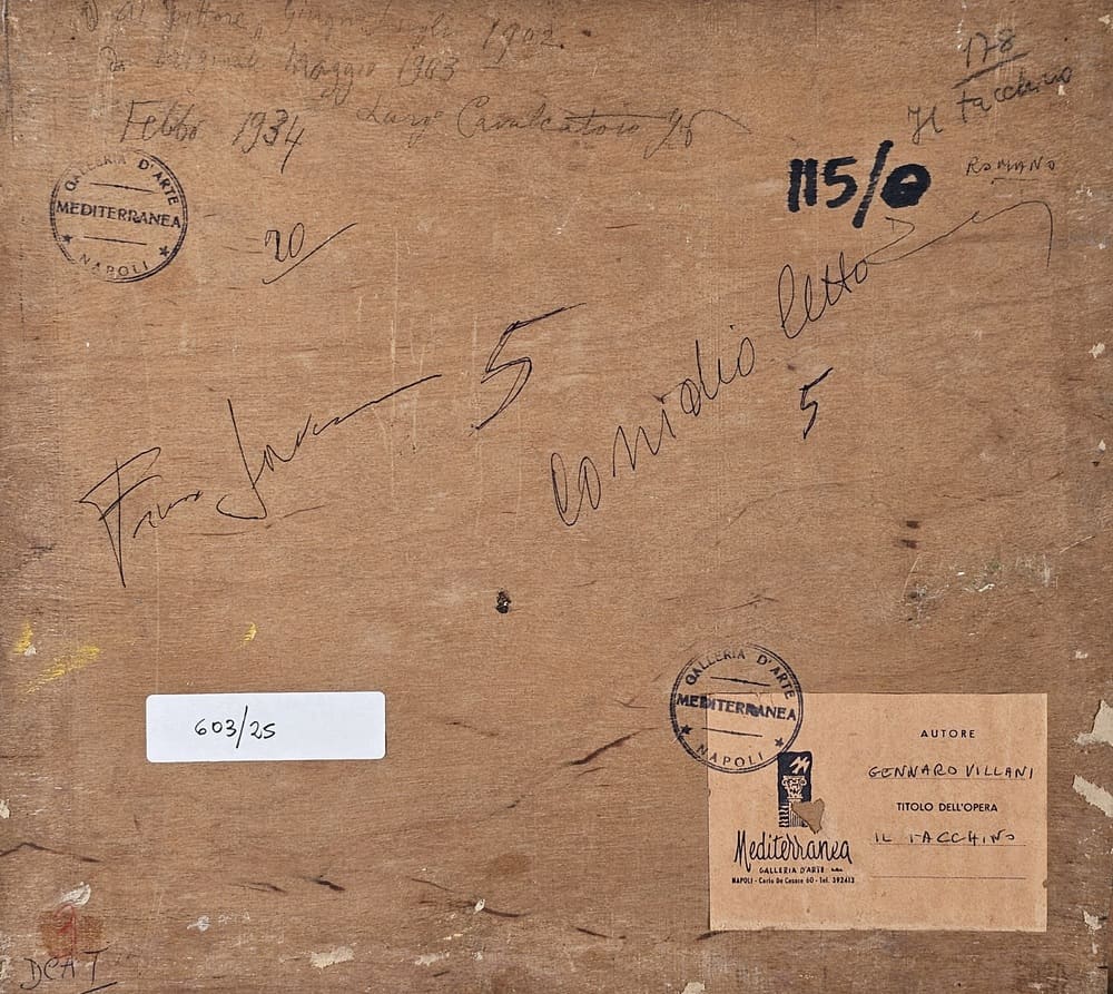 osservazioni: opera recante a tergo cartiglio e timbri galleria Mediterranea