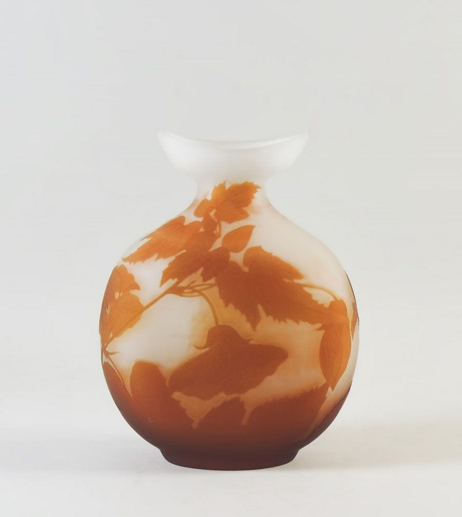 VASO IN VETRO CAMMEO decorato in stile Gallé con motivi floreali e vegetali...