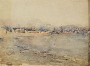 FOLLINI CARLO Domodossola 1848 - 1938 Pegli Marina Acquerello su carta 21x27 cm Firma in basso a sinistra Watercolor on paper Signed lower left