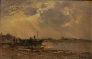 FOLLINI CARLO Domodossola 1848 - 1938 Pegli Marina toscana Olio su tavola...
