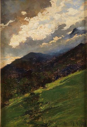 DELLEANI LORENZO Pollone 1840-1908 Torino Nubi 1/9/1908 Olio su tavola 45x31...