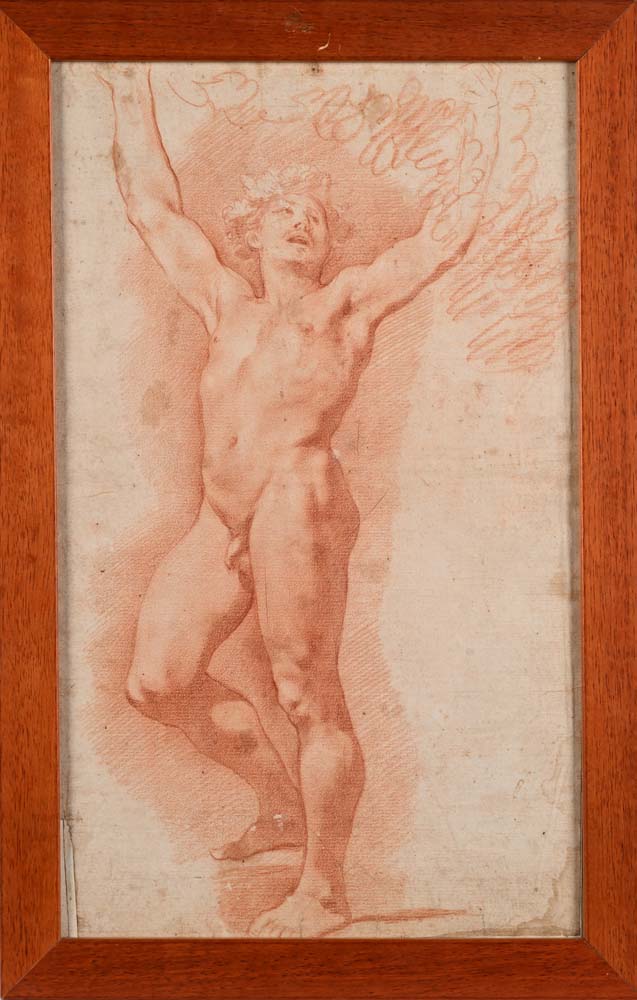 Scuola francese del XVIII secolo () Studio di Bacco Pietra rossa su carta mm...