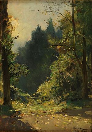 DELLEANI LORENZO Pollone 1840-1908 Torino Mattino 17/11/1901 Olio su tavola 45x31 cm Firma e data in basso a destra Già Galleria d'Arte Bottisio, Torino, etichetta al retro Già Galleria d'Arte, Fogliato, Torino, etichetta al retro