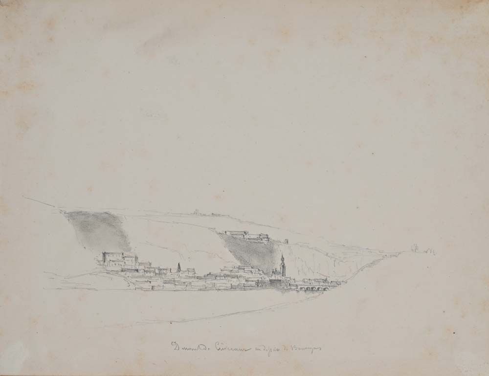 Scuola francese del XIX secolo () Veduta di paese matita su carta mm 210x250...