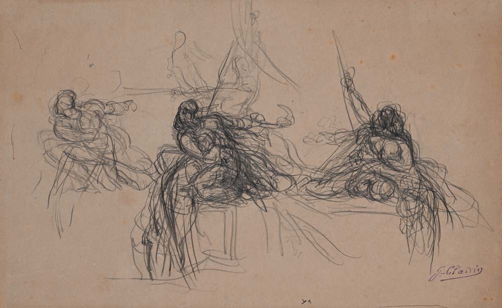 Georges Clairin (Parigi 1843 - Belle-Île-en-Mer 1919) Studio di figure Matita...