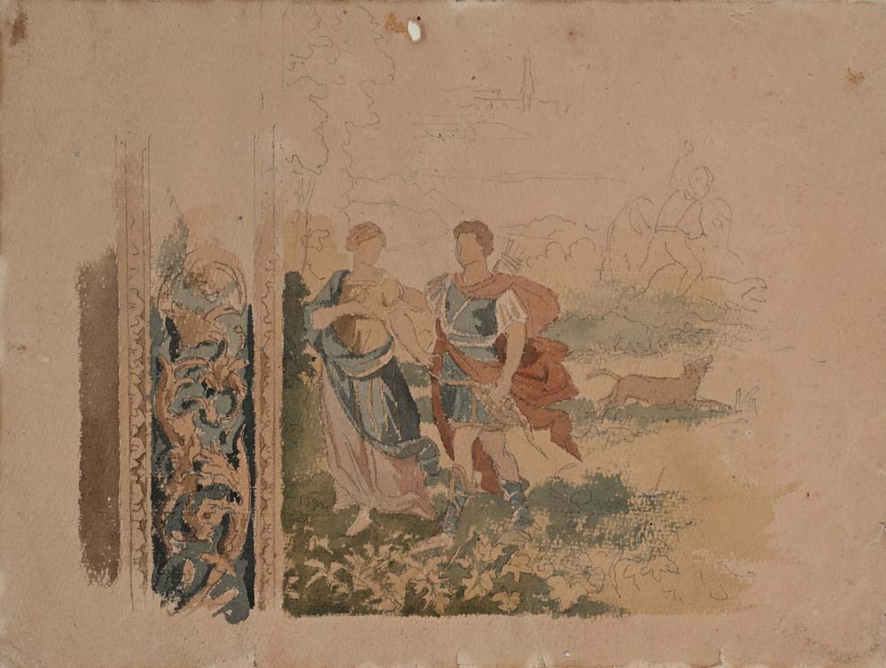 Studio per soffitto Acquerello su carta mm 240x300 - in cornice cm 33x39
