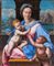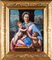 Madonna col Bambino e San Giovannino olio su tavola cm 37,5x31 - con cornice 53x46 Questo piccolo dipinto raffigura la Madonna col Bambino e san Giovannino, secondo uno schema compositivo derivato dalla celebre Madonna Aldobrandini (nota anche come Madonna Garvagh) di Raffaello Sanzio, oggi conservata alla National Gallery di Londra. La Vergine, seduta in un interno aperto su un paesaggio lacustre con architetture lontane, tiene in braccio il Bambino nudo che prende un garofano, tradizionalmente simbolo dell'amore divino e della Passione, dalla mano del suo cugino Giovanni Battista, il quale ricambia il gesto con un moto di tenera devozione. La composizione, di impostazione piramidale e raccolta, rivela la piena assimilazione del linguaggio raffaellesco maturo: la morbidezza dei volti, la purezza dei gesti e la serena armonia dei colori rimandano agli anni in cui Raffaello era impegnato nella decorazione delle Stanze Vaticane. Questo dipinto, pur derivando fedelmente dal modello raffaellesco, presenta una resa più rigida nei contorni e una cromia più intensa, elementi che fanno pensare alla mano di un seguace di Raffaello, probabilmente attivo a Roma nei primi decenni del Cinquecento. Si tratta tuttavia di un dipinto di notevole qualità esecutiva, che testimonia una profonda assimilazione del linguaggio di Raffaello e ne traduce la grazia in una dimensione più intima e affettuosa, coerente con la destinazione devozionale domestica dell’immagine, analoga a quella dell’originale conservato alla National Gallery di Londra.