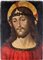 Di particolare interesse è la corona di spine, rarissima nell’opera di Antoniazzo e forse un unicum nel suo catalogo, che aggiunge al volto del Redentore un’intensità drammatica insolita, pur mediata dalla consueta solennità iconica dell’artista. Le lettere dorate che ornano il colletto, non riconducibili a un alfabeto reale, assumono un valore ornamentale e calligrafico, evocando una dimensione sacrale più che narrativa.