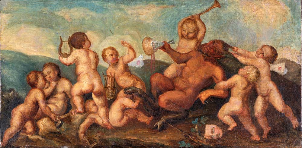 Baccanale olio su tavola cm 18x34 - in cornice cm 31x47 già collezione Lupi; collezione privata, Roma