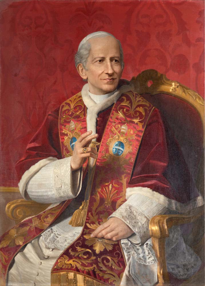 Ritratto di Papa Leone XIII olio su tela cm 106,5x76 - con cornice cm 144x114,5 nato Vincenzo Gioacchino Raffaele Luigi Pecci (Carpineto Romano, 2 marzo 1810 - Roma, 20 luglioo 1903)