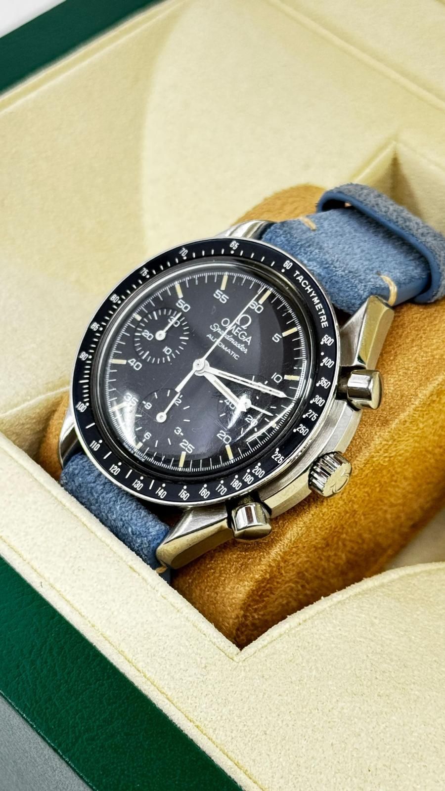 Marca Omega Modello (Orologio) Speedmaster Reduced Numero di referenza 175.0032 Carica Automatico Materiale della cassa Acciaio Anno di produzione 1993 (Anno approssimativo) Condizione Usato (Buono) Corredo No box, con documenti originali Calibro Carica automatico Materiale della cassa Acciaio Diametro 39 mm Impermeabile 5 ATM Vetro Plexiglas Quadrante Nero Numeri sul quadrante Senza numeri Cinturino Colore cinturino aftermarket Materiale chiusura Acciaio - COMMISSIONE D’ASTA 25%