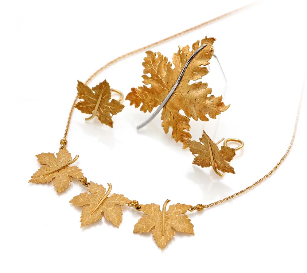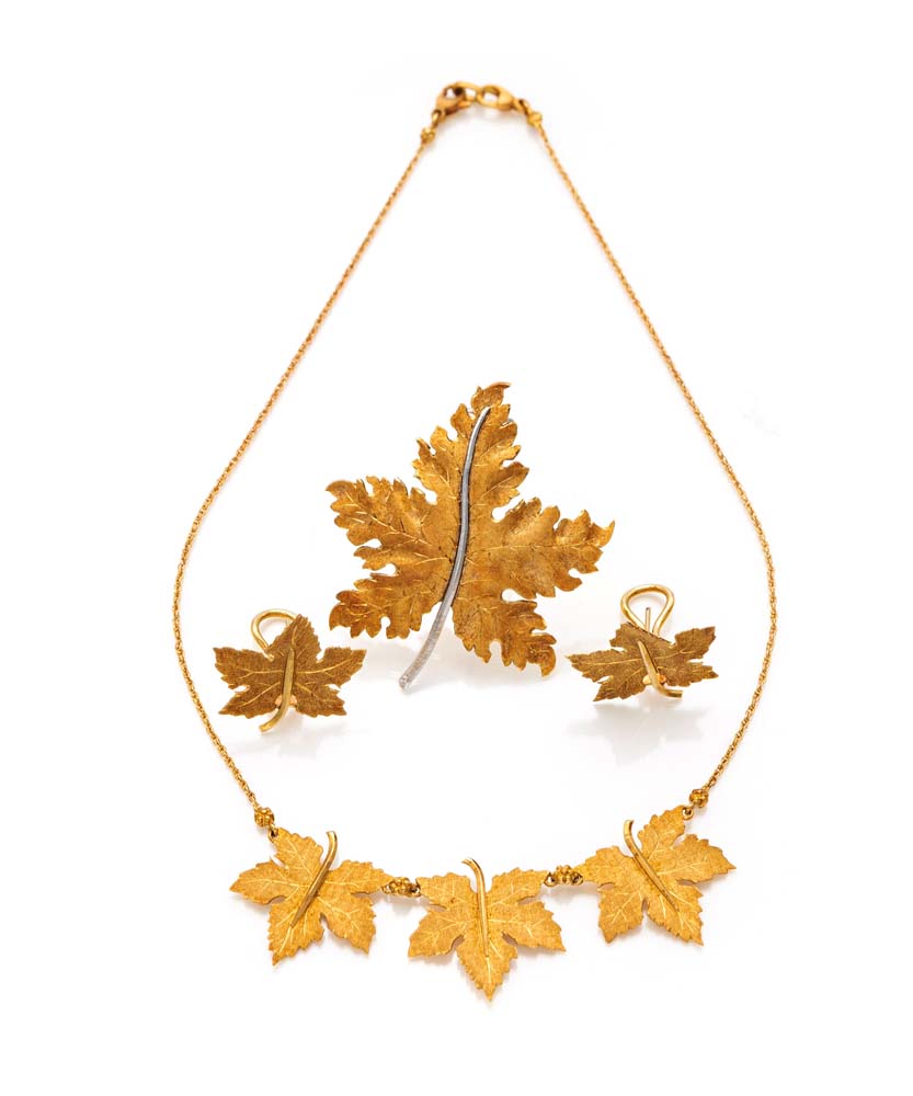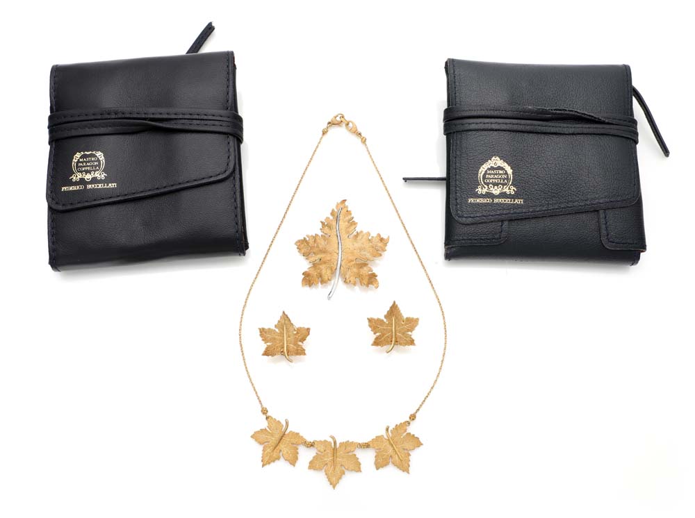 Lotto 7 | Federico Buccellati, parure di girocollo, orecchini e spilla in oro Oro...