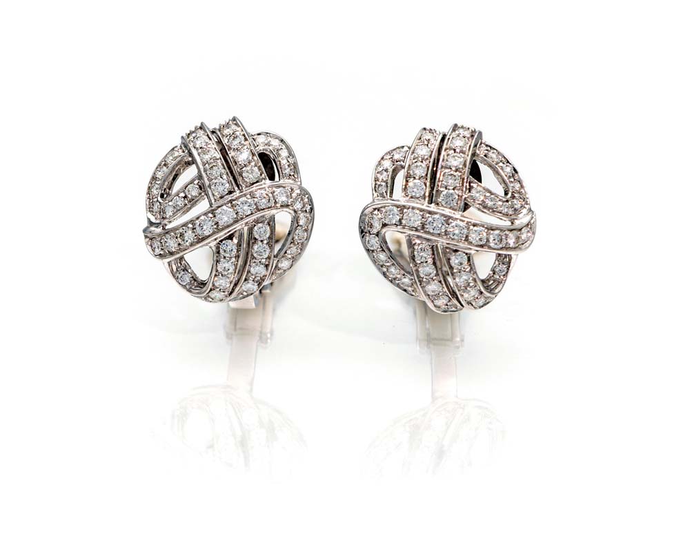 Orecchini a bottone in oro e brillanti Oro bianco 750/000. Peso complessivo gr 8,20